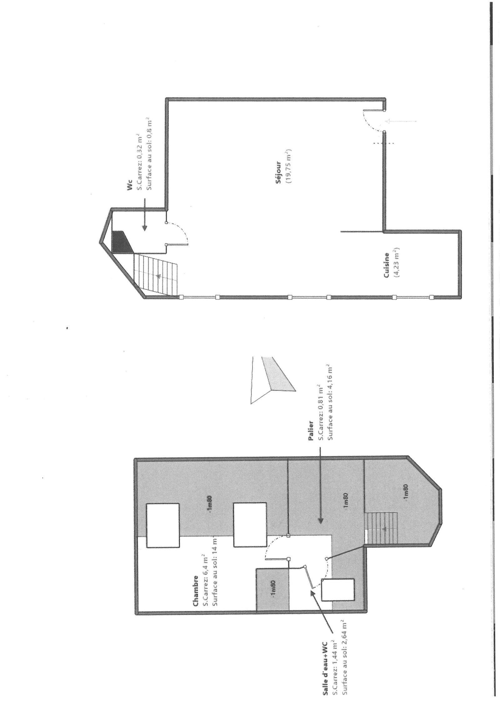 Agréable appartement 2 pièces en duplex comprenant : au RDC, une grande pièce principale avec cuisine ouverte , WC. Au 1er étage (sous combles) une chambre et une salle d'eau avec WC. la surface CARREZ est de 33 m² et la surface au sol de 45 m².